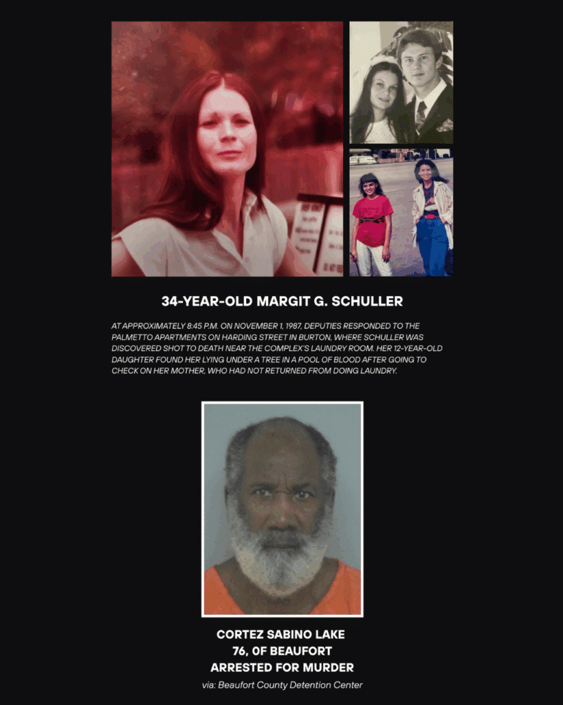 Nearly four decades after the tragic killing of 34-year-old Margit G. Schuller, the Beaufort County Sheriff’s Office announces a breakthrough in one of the region’s longest-running cold case investigations. Advanced forensic technology and renewed investigative efforts have led to the arrest of 76-year-old Cortez Sabino Lake of Beaufort, who has been charged with murder in connection with Schuller’s 1987 death.